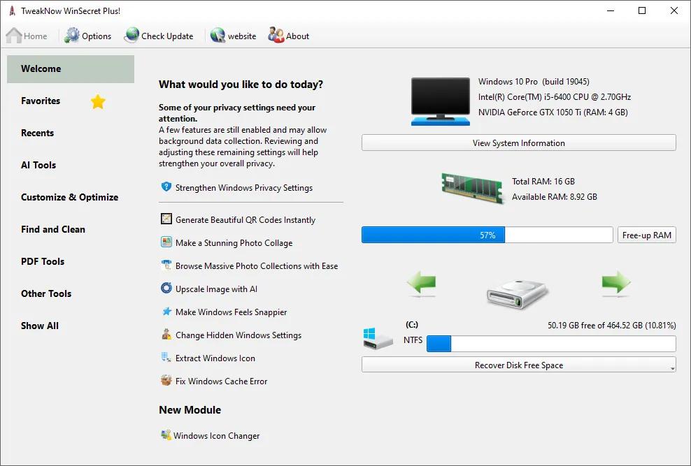 The Ultimate All-in-One Toolkit for Windows 11 and 10. Streamline, optimize, and maintain your PC effortlessly with this top-rated utility suite. It includes over 25 powerful tools designed to help you clean, tweak, repair, and enhance your system. Whether you’re a casual user or a power tweaker, this toolkit is your ideal companion for achieving a faster and smoother Windows experience.